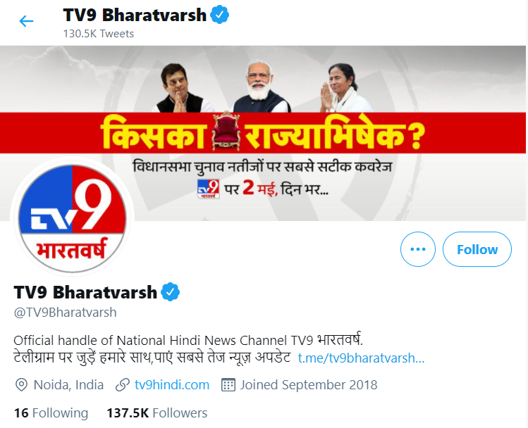 ਅਸੀਂ ਵਾਇਰਲ ਹੋ ਰਹੀ ਗ੍ਰਾਫਿਕ ਪਲੇਟ ਨੂੰ ਲੈ ਕੇ ‘TV9 Bharatvarsh’ ਦੇ ਅਧਿਕਾਰਕ ਟਵਿੱਟਰ ਹੈਂਡਲ ਨੂੰ ਵੀ ਖੰਗਾਲਿਆ ਪਰ ਸਰਚ ਦੇ ਦੌਰਾਨ ਸਾਨੂੰ TV9 Bharatvarsh ਤੇ ਇਸ ਤਰ੍ਹਾਂ ਦੀ ਕੋਈ ਖ਼ਬਰ ਨਹੀਂ ਮਿਲੀ।