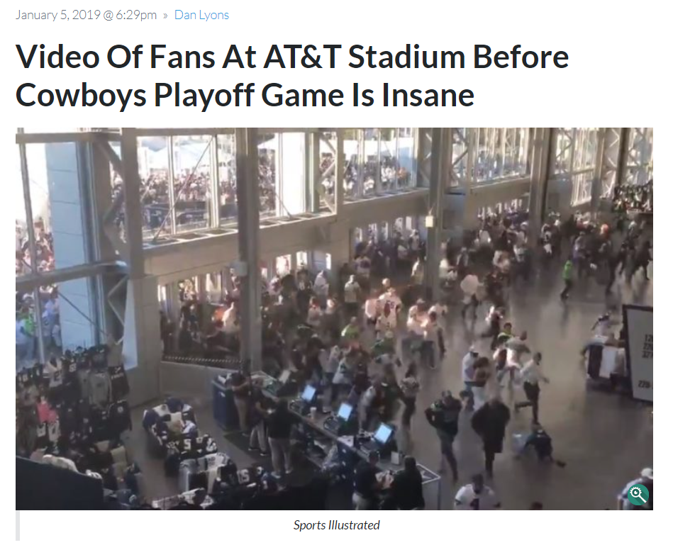 ਸਰਚ ਦੇ ਦੌਰਾਨ ਸਾਨੂੰ ਵਾਇਰਲ ਵੀਡੀਓ ਅਮਰੀਕਾ ਦੇ ਖੇਡ ਪੱਤਰਕਾਰ Jon Machota ਦੁਆਰਾ 6 ਜਨਵਰੀ 2019 ਨੂੰ ਟਵੀਟ ਕੀਤਾ ਮਿਲਿਆ। ਵੀਡੀਓ ਨੂੰ ਟਵੀਟ ਕਰਦਿਆਂ ਕੈਪਸ਼ਨ ਲਿਖਿਆ ਗਿਆ, “AT&T Stadium doors have opened for Cowboys vs. Seahawks”। ਇਸ ਵੀਡੀਓ ਨੂੰ ਹੇਠਾਂ ਕਲਿਕ ਕਰ ਵੇਖਿਆ ਜਾ ਸਕਦਾ ਹੈ।