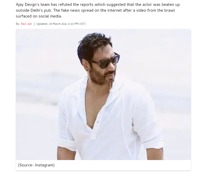 ਇਸ ਦੌਰਾਨ ਸੋਸ਼ਲ ਮੀਡੀਆ ਤੇ ਇਕ ਵੀਡੀਓ ਨਾਲ ਦਾਅਵਾ ਕੀਤਾ ਜਾ ਰਿਹਾ ਹੈ ਕਿ ਕਿਸਾਨ ਅੰਦੋਲਨ ਵਿੱਚ ਕਿਸਾਨਾਂ ਦਾ ਸਾਥ ਨਾ ਦੇਣ ਕਰਕੇ ਅਜੇ ਦੇਵਗਨ ਦੇ ਨਾਲ ਦਿੱਲੀ ਵਿਖੇ ਕੁੱਟਮਾਰ ਕੀਤੀ ਗਈ। ਗੌਰਤਲਬ ਹੈ ਕਿ ਪਿਛਲੇ ਕੁਝ ਦਿਨਾਂ ਪਹਿਲਾਂ ਮੁੰਬਈ ਵਿਖੇ ਇਕ ਨਿਹੰਗ ਸਿੱਖ ਨੇ ਬਾਲੀਵੁੱਡ ਅਦਾਕਾਰ ਅਜੇ ਦੇਵਗਨ ਦੀ ਗੱਡੀ ਦੇ ਸਾਹਮਣੇ ਵਿਰੋਧ ਪ੍ਰਦਰਸ਼ਨ ਕੀਤਾ ਸੀ।