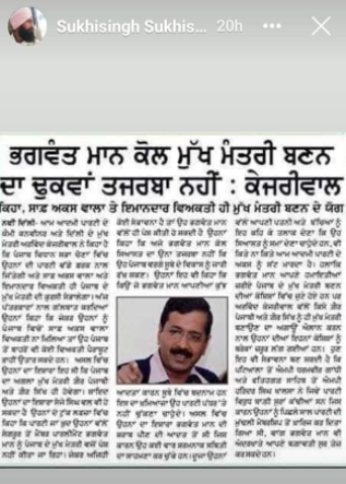 ਇਸ ਦੌਰਾਨ ਸੋਸ਼ਲ ਮੀਡਿਆ ਤੇ ਦਿੱਲੀ ਦੇ ਮੁੱਖ ਮੰਤਰੀ ਅਰਵਿੰਦ ਕੇਜਰੀਵਾਲ ਦਾ ਬਿਆਨ ਵਾਇਰਲ ਹੋ ਰਿਹਾ ਹੈ ਜਿਸ ਮੁਤਾਬਕ ਮੁੱਖ ਮੰਤਰੀ ਅਰਵਿੰਦ ਕੇਜਰੀਵਾਲ ਨੇ ਸੰਸਦ ਮੈਂਬਰ ਭਗਵੰਤ ਮਾਨ ਦੇ ਖਿਲਾਫ ਬਿਆਨ ਦਿੰਦਿਆਂ ਕਿਹਾ ਕਿ ਭਗਵੰਤ ਮਾਨ ਕੋਲ ਮੁੱਖ ਮੰਤਰੀ ਬਣਨ ਦਾ ਢੁਕਵਾਂ ਤਜ਼ਰਬਾ ਨਹੀਂ ਹੈ।