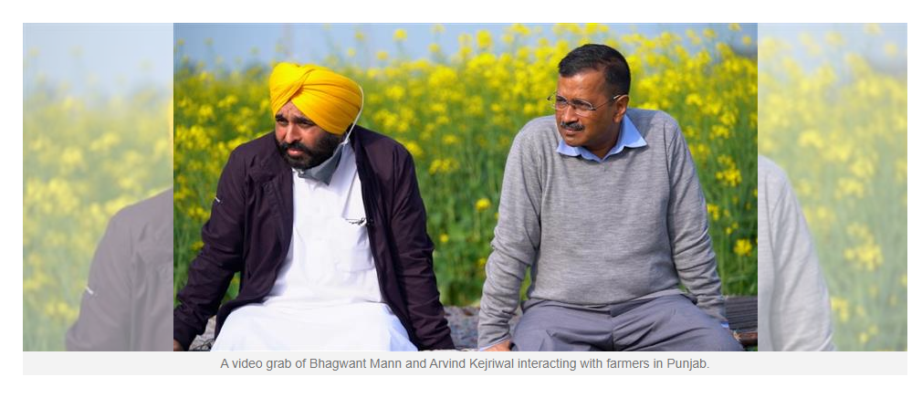 ਦ ਟ੍ਰਿਬਿਊਨ ਦੀ ਰਿਪੋਰਟ ਦੇ ਮੁਤਾਬਕ ਆਮ ਆਦਮੀ ਪਾਰਟੀ ਦੇ ਕਨਵੀਨਰ ਅਰਵਿੰਦ ਕੇਜਰੀਵਾਲ ਅਤੇ ਪੰਜਾਬ ਪਾਰਟੀ ਪ੍ਰਧਾਨ ਭਗਵੰਤ ਮਾਨ ਨੇ ਪੰਜਾਬ ਦੇ ਮੁੱਖ ਮੰਤਰੀ ਚਰਨਜੀਤ ਸਿੰਘ ਚੰਨੀ ਦੇ ਹਲਕੇ ਚਮਕੌਰ ਸਾਹਿਬ ਵਿਖੇ ਕਿਸਾਨਾਂ ਦੇ ਨਾਲ ਗੱਲਬਾਤ ਕੀਤੀ। ਰਿਪੋਰਟ ਦੇ ਮੁਤਾਬਕ ਕੇਜਰੀਵਾਲ ਅਤੇ ਮਾਨ ਨੇ ਸਰ੍ਹੋਂ ਦੇ ਖੇਤਾਂ ਦੇ ਵਿੱਚ ਮੰਜੇ ਤੇ ਬਹਿ ਕੇ ਕਿਸਾਨਾਂ ਦੀ ਮੁਸ਼ਕਿਲਾਂ ਨੂੰ ਸੁਣਿਆ।