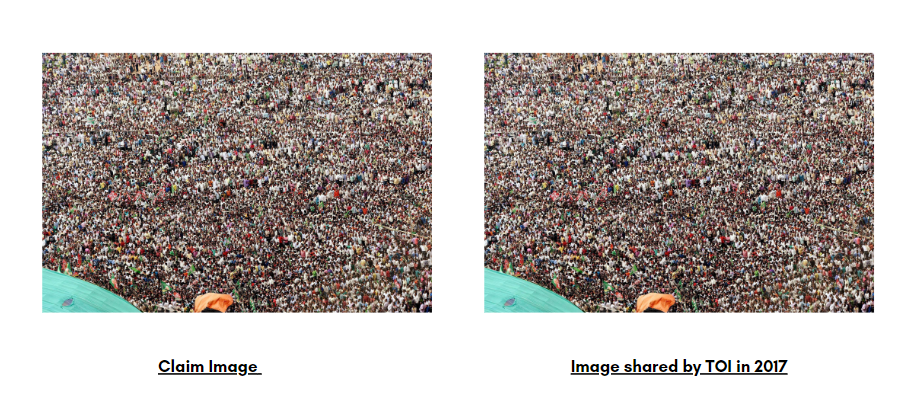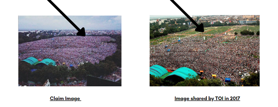 ਦੂਜੀ ਤਸਵੀਰ ਨਾਲ ਮੇਲ ਕਰਨ ‘ਤੇ ਅਸੀਂ ਪਾਇਆ ਕਿ ਇਹ ਤਸਵੀਰ ਵੀ ਸਾਲ 2017 ਵਿੱਚ ਟਾਈਮਜ਼ ਆਫ ਇੰਡੀਆ ਦੁਆਰਾ ਸ਼ੇਅਰ ਕੀਤੀ ਗਈ ਤਸਵੀਰ ਨਾਲ ਮਿਲਦੀ-ਜੁਲਦੀ ਹੈ ਪਰ ਇਸ ਦੇ ਕੁਝ ਹਿੱਸਾ ਬਦਲਿਆ ਹੋਇਆ ਹੈ। ਦਾਅਵੇ ਵਿੱਚ ਸਾਂਝੀ ਕੀਤੀ ਗਈ ਤਸਵੀਰ ਵਿੱਚ ਟਾਈਮਜ਼ ਆਫ਼ ਇੰਡੀਆ ਦੁਆਰਾ ਸਾਂਝੀ ਕੀਤੀ ਗਈ ਤਸਵੀਰ ਨਾਲੋਂ ਵੱਡੀ ਭੀੜ ਦਿਖਾਈ ਦੇ ਰਹੀ ਹੈ।