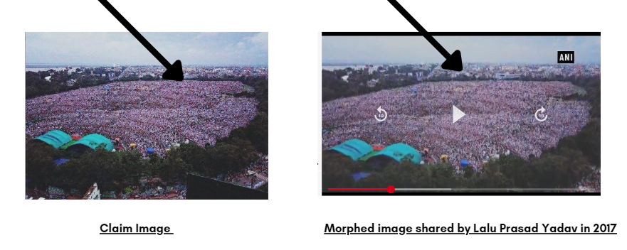 ਜਾਂਚ ਦੌਰਾਨ ਸਾਨੂੰ 28 ਅਗਸਤ 2017 ਨੂੰ ‘ਇਕਨਾਮਿਕ ਟਾਈਮਜ਼’ ਵੱਲੋਂ ਪ੍ਰਕਾਸ਼ਿਤ ਇੱਕ ਰਿਪੋਰਟ ਮਿਲੀ ਜਿਸ ਵਿੱਚ ਦੱਸਿਆ ਗਿਆ ਹੈ ਕਿ ਸਾਲ 2017 ਵਿੱਚ ਰਾਸ਼ਟਰੀ ਜਨਤਾ ਦਲ ਵੱਲੋਂ ਆਯੋਜਿਤ ‘ਭਾਜਪਾ ਭਜਾਓ, ਦੇਸ਼ ਬਚਾਓ ਰੈਲੀ’ ਤੋਂ ਬਾਅਦ ਲਾਲੂ ਪ੍ਰਸਾਦ ਯਾਦਵ ਨੇ ਭੀੜ ਦੀ ਐਡੀਟਡ ਤਸਵੀਰ ਸ਼ੇਅਰ ਕੀਤੀ ਗਈ। ਰਿਪੋਰਟ ਵਿੱਚ ਅਸੀਂ ਦੇਖਿਆ ਕਿ ANI ਦੁਆਰਾ ਸ਼ੇਅਰ ਕੀਤੀ ਗਈ ਤਸਵੀਰ ਨੂੰ ਸਾਲ 2017 ਵਿੱਚ ਲਾਲੂ ਪ੍ਰਸਾਦ ਯਾਦਵ ਨੇ ਸ਼ੇਅਰ ਕੀਤਾ ਸੀ। ਦਾਅਵੇ ਨਾਲ ਸਾਂਝੀ ਕੀਤੀ ਗਈ ਤਸਵੀਰ ਵੀ ਉਹੀ ਐਡਿਟ ਕੀਤੀ ਤਸਵੀਰ ਹੈ, ਜੋ ਸਾਲ 2017 ਵਿੱਚ ਲਾਲੂ ਪ੍ਰਸਾਦ ਯਾਦਵ ਨੇ ਸਾਂਝੀ ਕੀਤੀ ਸੀ।