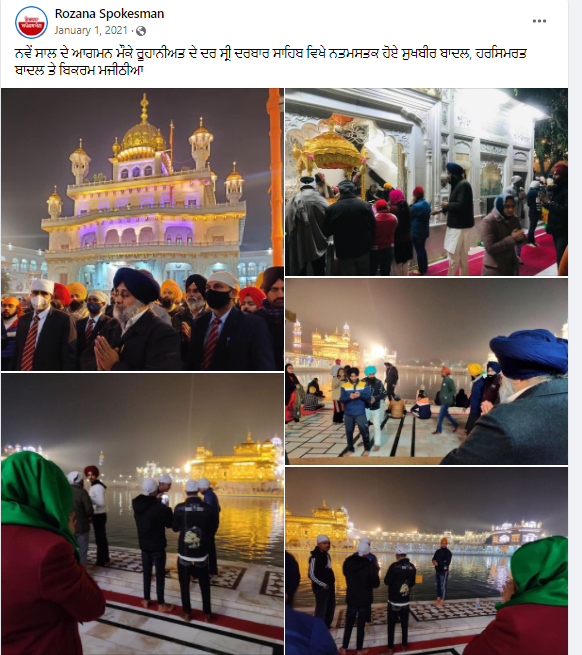 ਸਰਚ ਦੇ ਦੌਰਾਨ ਸਾਨੂੰ ਸੋਸ਼ਲ ਮੀਡੀਆ ਤੇ ਵਾਇਰਲ ਹੋ ਰਹੀ ਦੋ ਤਸਵੀਰਾਂ ਸ਼੍ਰੋਮਣੀ ਅਕਾਲੀ ਦਲ ਮਜੀਠਾ ਦੇ ਅਧਿਕਾਰਿਕ ਫੇਸਬੁੱਕ ਪੇਜ ਤੇ 1 ਜਨਵਰੀ 2021 ਨੂੰ ਅਪਲੋਡ ਮਿਲੀਆਂ। ਕੈਪਸ਼ਨ ਦੇ ਮੁਤਾਬਕ ਬਿਕਰਮਜੀਤ ਸਿੰਘ ਮਜੀਠੀਆ ਦੀਆਂ ਇਹ ਤਸਵੀਰਾਂ ਸ੍ਰੀ ਦਰਬਾਰ ਸਾਹਿਬ ਅੰਮ੍ਰਿਤਸਰ ਵਿਖੇ ਨਤਮਸਤਕ ਹੁੰਦਿਆਂ ਦੀਆਂ ਹਨ।