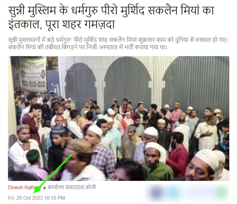 ਅਮਰ ਉਜਾਲਾ ਨੇ ਵੀ ਬਰੇਲੀ ਵਿੱਚ ਹੋਈ ਧਾਰਮਿਕ ਆਗੂ ਦੀ ਮੌਤ ਦੀ ਖਬਰ ਪ੍ਰਕਾਸ਼ਿਤ ਕੀਤੀ ਸੀ। ਸਾਨੂੰ 22 ਅਕਤੂਬਰ, 2023 ਨੂੰ ਸ਼ਾਹ ਸਕਲੈਨ ਮੀਆਂ ਦੇ ਅੰਤਿਮ ਸੰਸਕਾਰ ਦੀ ਲਾਈਵ ਸਟ੍ਰੀਮ ਵੀ ਮਿਲੀ।