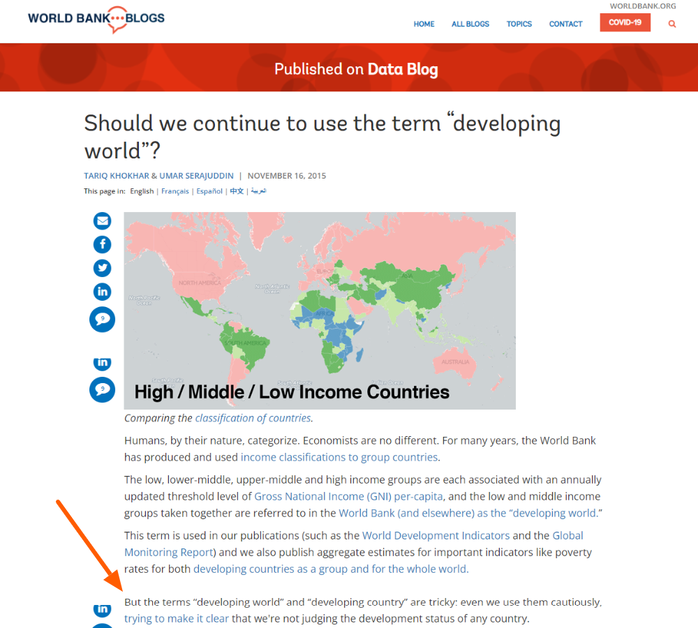 2015 ਵਿੱਚ ਵਿਸ਼ਵ ਬੈਂਕ ਦੀ ਵੈੱਬਸਾਈਟ ‘ਤੇ ਪ੍ਰਕਾਸ਼ਿਤ ਇੱਕ ਬਲਾਗ ਵਿੱਚ, ਮਾਹਿਰਾਂ ਨੇ ਵਿਸਥਾਰ ਵਿੱਚ ਦੱਸਿਆ ਸੀ ਕਿ ‘ਵਿਕਾਸਸ਼ੀਲ ਦੇਸ਼’ ਜਾਂ ‘ਵਿਕਾਸਸ਼ੀਲ ਅਰਥ ਵਿਵਸਥਾ’ ਵਰਗੇ ਸ਼ਬਦਾਂ ਦੀ ਵਰਤੋਂ ਕਰਨ ਵਿੱਚ ਕੀ ਸਮੱਸਿਆ ਸੀ।