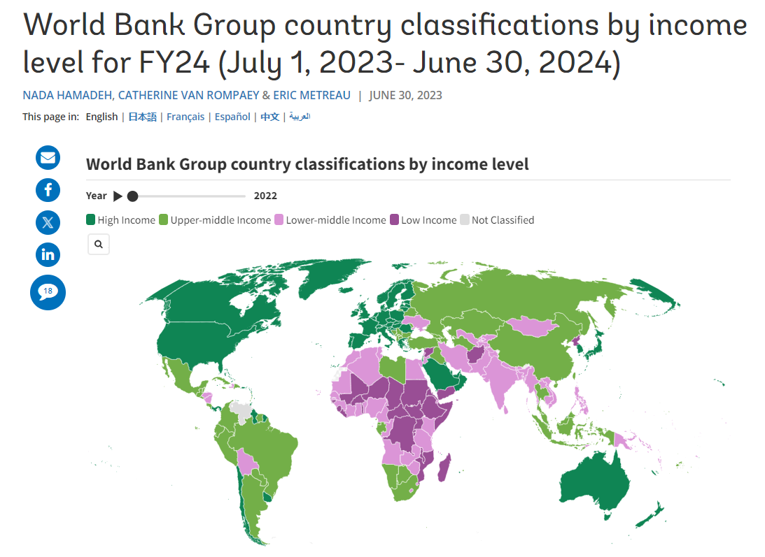 31 ਮਈ 2016 ਨੂੰ ਇਕਨਾਮਿਕ ਟਾਈਮਜ਼ ਦੁਆਰਾ ਪ੍ਰਕਾਸ਼ਿਤ ਇੱਕ ਰਿਪੋਰਟ ਵਿੱਚ ਦੱਸਿਆ ਗਿਆ ਹੈ ਕਿ ਕਈ ਦਹਾਕਿਆਂ ਤੋਂ ਦੇਸ਼ਾਂ ਦੀਆਂ ਅਰਥਵਿਵਸਥਾਵਾਂ ਨੂੰ ‘ਵਿਕਸਿਤ’ ਅਤੇ ‘ਵਿਕਾਸਸ਼ੀਲ’ ਵਜੋਂ ਜਾਣਿਆ ਜਾਂਦਾ ਸੀ। 2016 ਵਿੱਚ, ਵਿਸ਼ਵ ਬੈਂਕ ਨੇ ਆਪਣਾ ਵੇਰਵਾ ਬਦਲਿਆ ਅਤੇ ਉਦੋਂ ਤੋਂ ਦੇਸ਼ ਨੂੰ ਉਨ੍ਹਾਂ ਦੀ ਪ੍ਰਤੀ ਵਿਅਕਤੀ ਕੁੱਲ ਘਰੇਲੂ ਆਮਦਨ ਦੇ ਆਧਾਰ ‘ਤੇ ਵੰਡਿਆ ਗਿਆ। ਇਸ ਬਦਲਾਅ ਦੇ ਪਿੱਛੇ ਵਿਸ਼ਵ ਬੈਂਕ ਦਾ ਤਰਕ ਸੀ ਕਿ ਜਿਨ੍ਹਾਂ ਦੇਸ਼ਾਂ ਦੀ ਪ੍ਰਤੀ ਵਿਅਕਤੀ ਆਮਦਨ ਵਿੱਚ ਮਹੱਤਵਪੂਰਨ ਅੰਤਰ ਹੈ, ਉਨ੍ਹਾਂ ਨੂੰ ਇੱਕੋ ਸ਼੍ਰੇਣੀ ਵਿੱਚ ਨਹੀਂ ਗਿਣਿਆ ਜਾ ਸਕਦਾ।