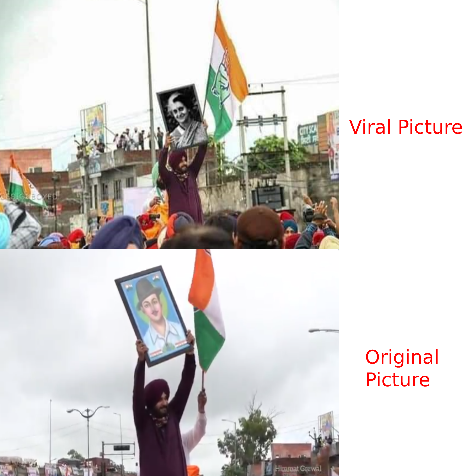 ਸੋਸ਼ਲ ਮੀਡੀਆ ਤੇ ਵਾਇਰਲ ਹੋ ਰਹੀ ਤਸਵੀਰ ਨੂੰ ਸ਼ੇਅਰ ਕਰਦਿਆਂ ਦਾਅਵਾ ਕੀਤਾ ਜਾ ਰਿਹਾ ਹੈ ਕਿ ਨਵਜੋਤ ਸਿੰਘ ਸਿੱਧੂ ਦੀ ਅੰਮ੍ਰਿਤਸਰ ਫੇਰੀ ਦੇ ਦੌਰਾਨ ਉਨ੍ਹਾਂ ਨੇ ਇੰਦਰਾ ਗਾਂਧੀ ਦੀ ਤਸਵੀਰ ਨੂੰ ਲਹਿਰਾਇਆ।
