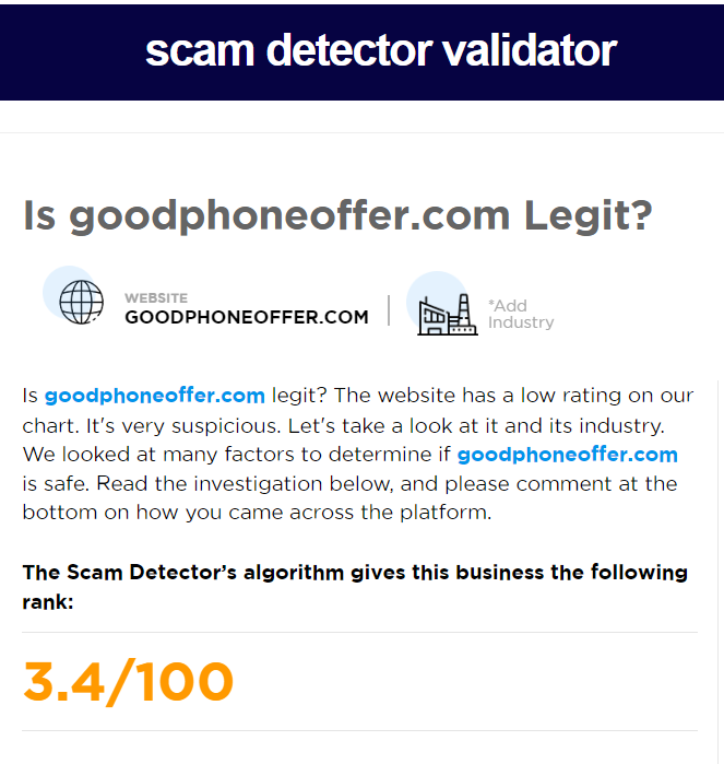 ਹੁਣ ਅਸੀਂ ਦਾਅਵੇ ਦੇ ਨਾਲ ਸਾਂਝੇ ਕੀਤੇ ਜਾ ਰਹੇ ਲਿੰਕ ‘ਤੇ ਕਲਿੱਕ ਕੀਤਾ। ਇਹ ਲਿੰਕ goodoffer.com ਨਾਮ ਦੀ ਵੈੱਬਸਾਈਟ ‘ਤੇ ਖੁੱਲ੍ਹਦਾ ਹੈ। ਸਾਨੂੰ ਇਹ ਵੈੱਬਸਾਈਟ ਸ਼ੱਕੀ ਲੱਗੀ। ਇਸ ਲਈ ਅਸੀਂ ਇਸ ਨੂੰ ਸਕੈਮ ਡਿਟੈਕਟਰ ‘ਤੇ ਚੈਕ ਕੀਤਾ। ਸਕੈਮ ਡਿਟੈਕਟਰ ਨੇ ਇਸ ਵੈੱਬਸਾਈਟ ਨੂੰ 100 ਵਿੱਚੋਂ 3.4 ਦੀ ਰੈਂਕਿੰਗ ਦਿੱਤੀ ਹੈ। ਸਕੈਮ ਡਿਟੈਕਟਰ ਨੇ ਇਸ ਵੈਬਸਾਈਟ ਨੂੰ ਅਸੁਰੱਖਿਅਤ ਕਰਾਰ ਦਿੱਤਾ ਹੈ।