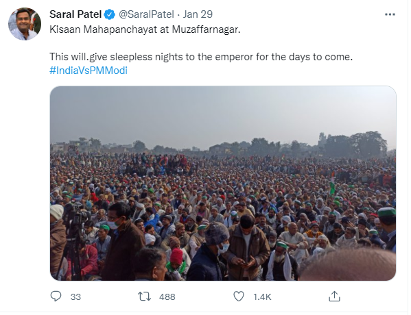 ਉੱਤਰ ਪ੍ਰਦੇਸ਼ ਦੇ ਮੁਜ਼ੱਫਰਨਗਰ (Muzaffarnagar) ‘ਚ ਕਿਸਾਨਾਂ ਨੇ ਮਹਾਪੰਚਾਇਤ ਦਾ ਆਯੋਜਨ ਕੀਤਾ ਸੀ ਜਿਸਦੇ ਵੱਡੀ ਗਿਣਤੀ ‘ਚ ਵੱਖ-ਵੱਖ ਪ੍ਰਦੇਸ਼ਾਂ ਤੋਂ ਕਿਸਾਨ ਸ਼ਾਮਲ ਹੋਏ ਸਨ। ਸੰਯੁਕਤ ਕਿਸਾਨ ਮੋਰਚਾ ਦੇ ਵਲੋਂ 27 ਸਿਤੰਬਰ ਨੂੰ ਭਾਰਤ ਬੰਦ ਦਾ ਐਲਾਨ ਕੀਤਾ ਗਿਆਹੈ। ਮੁਜ਼ੱਫਰਨਗਰ ‘ਚ ਹੋਈ ਇਸ ਵਿਸ਼ਾਲ ਮਹਾਪੰਚਾਇਤ ਦੀਆਂ ਸੋਸ਼ਲ ਮੀਡਿਆ ਤੇ ਕਈ ਤਸਵੀਰਾਂ ਵਾਇਰਲ ਹੋ ਰਹੀਆਂ ਹਨ।