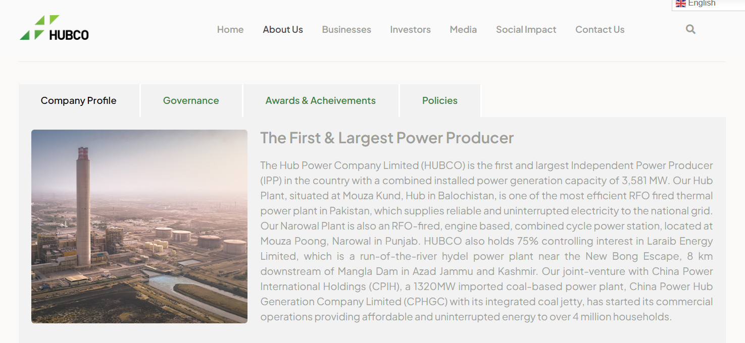 ਇਸ ਤੋਂ ਬਾਅਦ ਅਸੀਂ ਵੈਬਸਾਈਟ ‘ਤੇ ਮੌਜੂਦ “ਸਾਡੇ ਬਾਰੇ” ਨੂੰ ਖੋਜਿਆ। ਅਸੀਂ ਪਾਇਆ ਕਿ ਇਹ ਪਾਕਿਸਤਾਨ ਦੀ ਸਭ ਤੋਂ ਵੱਡੀ ਬਿਜਲੀ ਪੈਦਾ ਕਰਨ ਵਾਲੀ ਕੰਪਨੀ ਹੈ, ਜਿਸ ਦੇ ਬਲੋਚਿਸਤਾਨ, ਪੰਜਾਬ ਅਤੇ ਪਾਕਿਸਤਾਨ ਦੇ ਕਬਜ਼ੇ ਵਾਲੇ ਕਸ਼ਮੀਰ (ਪੀਓਕੇ) ਵਿੱਚ ਪਲਾਂਟ ਹਨ। ਇਸ ਤੋਂ ਇਲਾਵਾ ਵੈਬਸਾਈਟ ‘ਤੇ ਇਹ ਵੀ ਦੱਸਿਆ ਗਿਆ ਹੈ ਕਿ ਕੰਪਨੀ ਦੀ ਕਈ ਵੱਖ-ਵੱਖ ਪਾਕਿਸਤਾਨੀ ਕੰਪਨੀਆਂ ‘ਚ ਹਿੱਸੇਦਾਰੀ ਹੈ ਅਤੇ ਇਹ ਚੀਨ ਦੀ ‘ਚਾਈਨਾ ਪਾਵਰ ਇੰਟਰਨੈਸ਼ਨਲ ਹੋਲਡਿੰਗ ਲਿਮਟਿਡ’ ਨਾਲ ਸਾਂਝਾ ਕੰਮ ਕਰ ਰਹੀ ਹੈ।