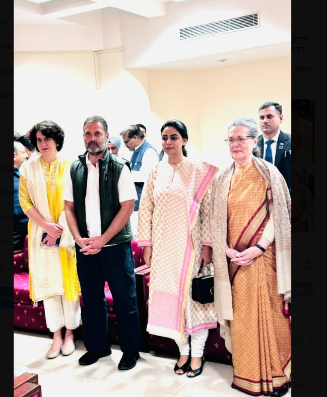 ਇਸ ਫੋਟੋ ਵਿੱਚ ਮੌਜੂਦ ਕੈਪਸ਼ਨ ਵਿੱਚ ਇਹ ਵੀ ਲਿਖਿਆ ਗਿਆ ਹੈ, “ਸਭ ਤੋਂ ਸਤਿਕਾਰਯੋਗ ਸ਼੍ਰੀਮਤੀ ਸੋਨੀਆ ਗਾਂਧੀ ਜੀ ਨੂੰ ਹਾਰਦਿਕ ਵਧਾਈ, ਜਿਨ੍ਹਾਂ ਨੇ ਅੱਜ ਕਾਂਗਰਸ ਦੇ ਰਾਜ ਸਭਾ ਉਮੀਦਵਾਰ ਵਜੋਂ ਨਾਮਜ਼ਦਗੀ ਪੱਤਰ ਦਾਖਲ ਕੀਤੇ। ਨਾਲ ਆਏ ਸ਼੍ਰੀ ਰਾਹੁਲ ਗਾਂਧੀ ਜੀ ਅਤੇ ਸ਼੍ਰੀਮਤੀ ਪ੍ਰਿਅੰਕਾ ਗਾਂਧੀ ਜੀ ਦਾ ਵੀ ਸਵਾਗਤ ਕੀਤਾ।