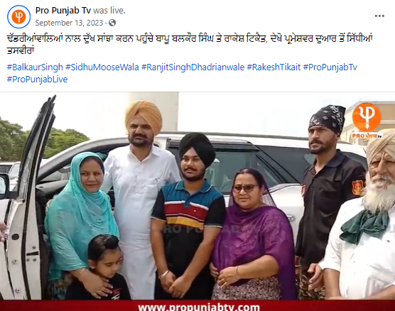ਆਪਣੀ ਸਰਚ ਦੇ ਦੌਰਾਨ ਅਸੀਂ ਪਾਇਆ ਕਿ ਇਹ ਵੀਡੀਓ 13 ਸਿਤੰਬਰ 2023 ਦਾ ਹੈ ਜਦੋਂ ਕਿਸਾਨ ਆਗੂ ਰਾਕੇਸ਼ ਟਿਕੈਤ ਸਿੱਧੂ ਮੂਸੇਵਾਲਾ ਦੇ ਪਿਤਾ ਬਲਕੌਰ ਸਿੰਘ ਨਾਲ ਪ੍ਰਚਾਰਕ ਰਣਜੀਤ ਸਿੰਘ ਢਡਰੀਆਂਵਾਲੇ ਦੀ ਮਾਤਾ ਦੇ ਦੇਹਾਂਤ ਤੋਂ ਬਾਅਦ ਪਰਮੇਸ਼ਰ ਦੁਆਰ ਦੁੱਖ ਸਾਂਝਾ ਕਰਨ ਪਹੁੰਚੇ ਸਨ।