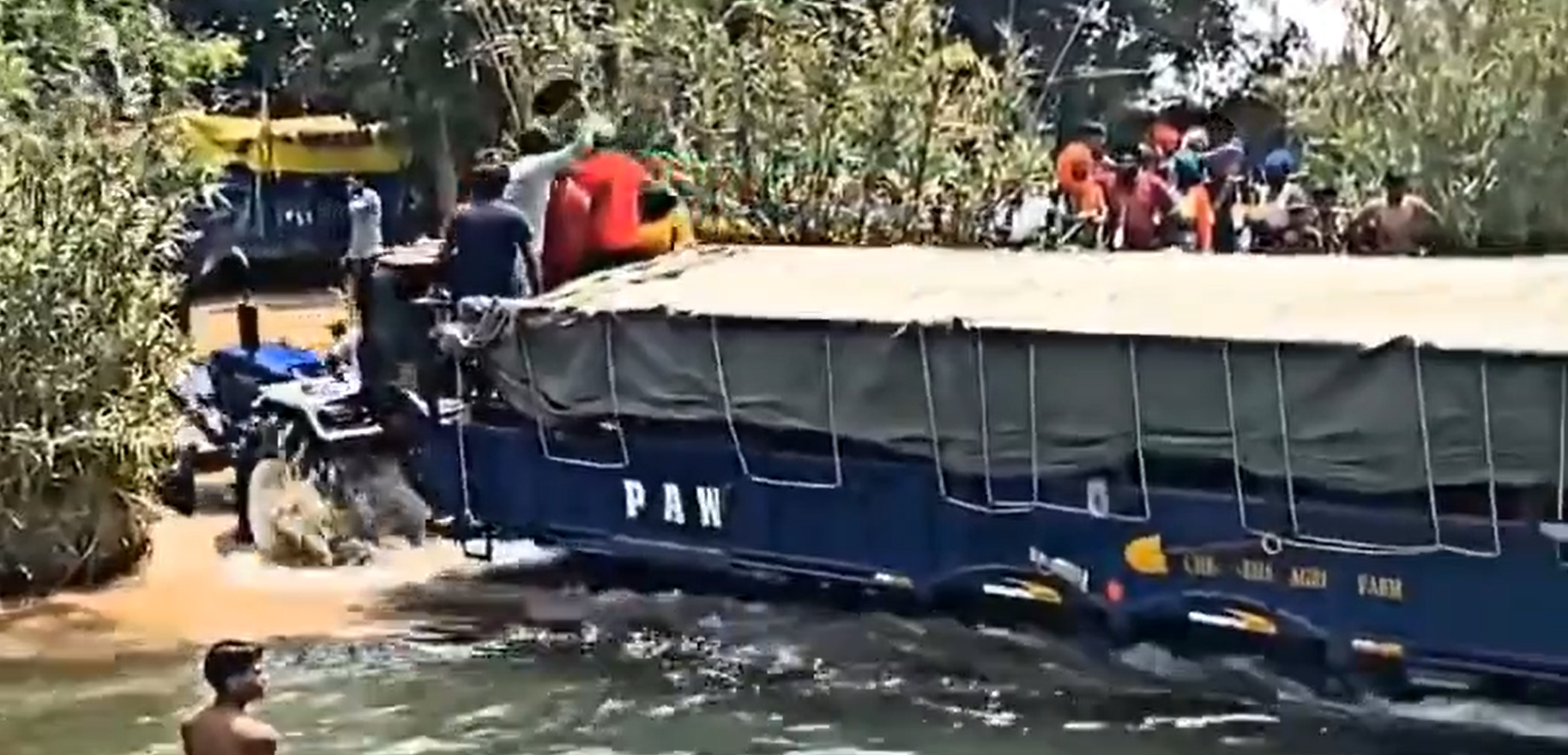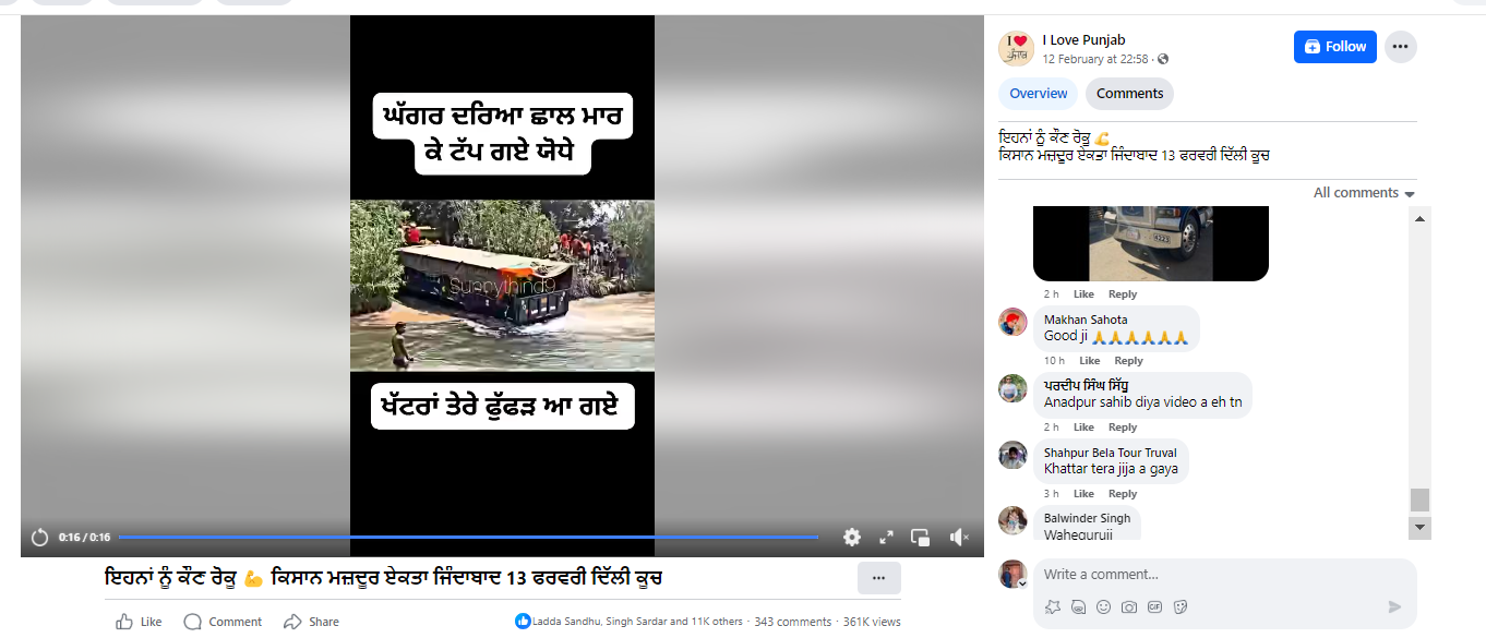 ਵਾਇਰਲ ਵੀਡੀਓ ਕਰੀਬ 16 ਸੈਕਿੰਡ ਦਾ ਹੈ। ਵੀਡੀਓ ਵਿੱਚ ਇੱਕ ਟਰੈਕਟਰ ਲੰਬੀ ਟਰਾਲੀ ਨੂੰ ਨਦੀ ਵਿੱਚ ਖਿੱਚਦਾ ਦਿਖਾਈ ਦੇ ਰਿਹਾ ਹੈ। ਵੀਡੀਓ ‘ਚ ਕੁਝ ਲੋਕ ਟਰਾਲੀ ‘ਤੇ ਬੈਠੇ ਵੀ ਦਿਖਾਈ ਦੇ ਰਹੇ ਹਨ। ਉੱਤਰ ਪ੍ਰਦੇਸ਼ ਦੇ ਸਾਬਕਾ ਮੁੱਖ ਮੰਤਰੀ ਅਤੇ ਸਮਾਜਵਾਦੀ ਪਾਰਟੀ ਦੇ ਮੁਖੀ ਅਖਿਲੇਸ਼ ਯਾਦਵ ਨੇ ਇਸ ਵੀਡੀਓ ਨੂੰ ਆਪਣੇ ਐਕਸ ਅਕਾਊਂਟ ਤੋਂ ਸ਼ੇਅਰ ਕੀਤਾ ਅਤੇ ਵੀਡੀਓ ਨੂੰ ਕਿਸਾਨਾਂ ਦੇ ਦਿੱਲੀ ਵੱਲ ਮਾਰਚ ਨਾਲ ਜੋੜ ਮੋਦੀ ਸਰਕਾਰ ‘ਤੇ ਨਿਸ਼ਾਨਾ ਸਾਧਿਆ।