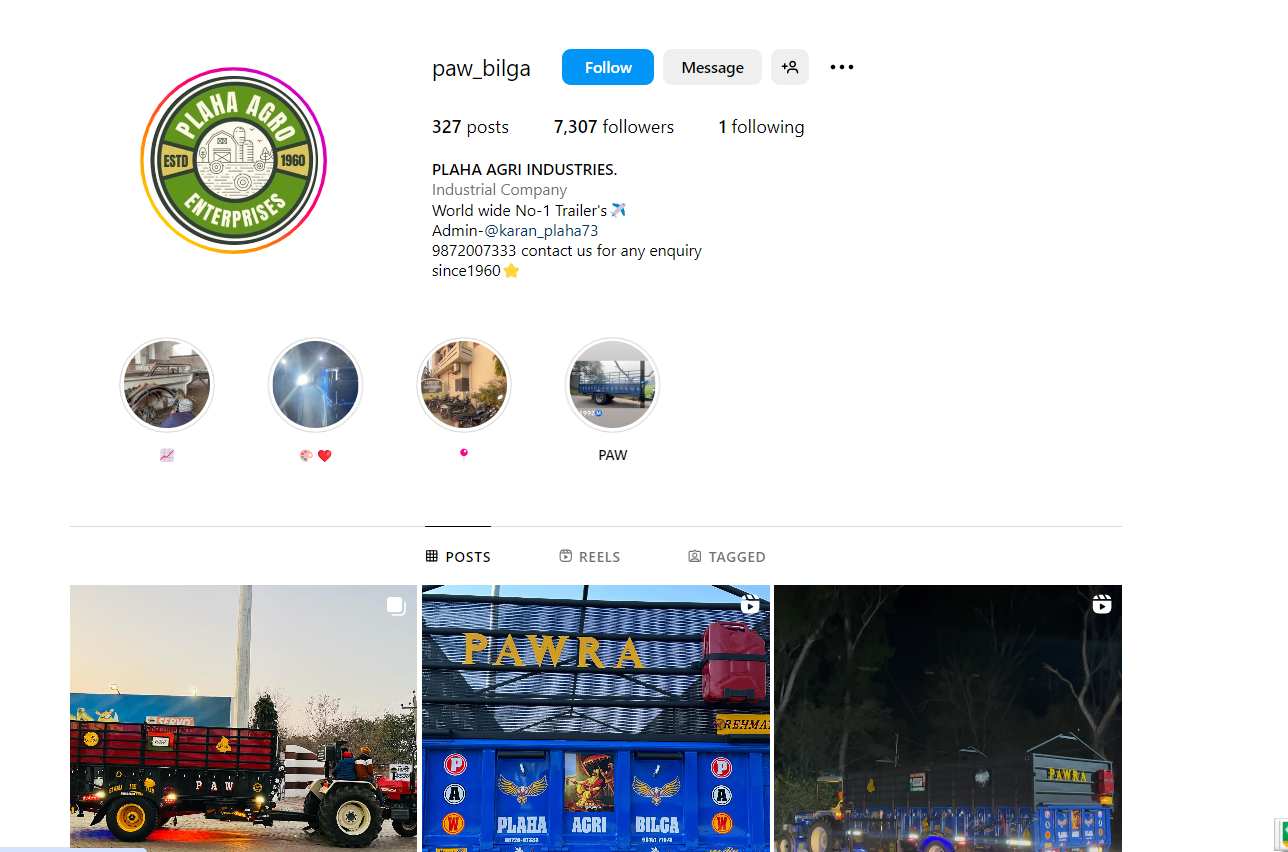 ਕੀਵਰਡ ਖੋਜ ਵਿੱਚ, ਸਾਨੂੰ Paw_bilga ਨਾਮ ਦਾ ਇੱਕ Instagram ਹੈਂਡਲ ਮਿਲਿਆ । ਇਸ ਹੈਂਡਲ ‘ਤੇ ਕਈ ਟਰੈਕਟਰ-ਟਰਾਲੀਆਂ ਦੀਆਂ ਫੋਟੋਆਂ ਹਨ।