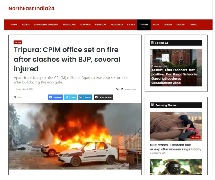 ਗੂਗਲ ਰਿਵਰਸ ਇਮੇਜ ਸਰਚ ਦੀ ਮਦਦ ਦੇ ਨਾਲ ਅਸੀਂ ਪਾਇਆ ਕਿ ਇਹ ਤਸਵੀਰਾਂ ਇਸ ਸਾਲ ਸਤੰਬਰ ਅਤੇ ਅਗਰਤਲਾ ਦੀਆਂ ਹਨ ਜਦੋਂ ਭਾਜਪਾ ਕਾਰਕੁਨਾਂ ਨੇ ਮੀਡੀਆ ਸੰਸਥਾਨਾਂ ਅਤੇ ਸੀਪੀਆਈ (ਐਮ) ਦੇ ਦਫਤਰ ਤੇ ਹਮਲਾ ਕਰ ਦਿੱਤਾ ਸੀ। ਇਸ ਤਸਵੀਰ ਨਾਲ ਸੰਬੰਧਿਤ ਆਰਟੀਕਲ ਤੁਸੀਂ ਇੱਥੇ, ਇੱਥੇ ਅਤੇ ਇੱਥੇ ਪੜ੍ਹ ਸਕਦੇ ਹੋ।