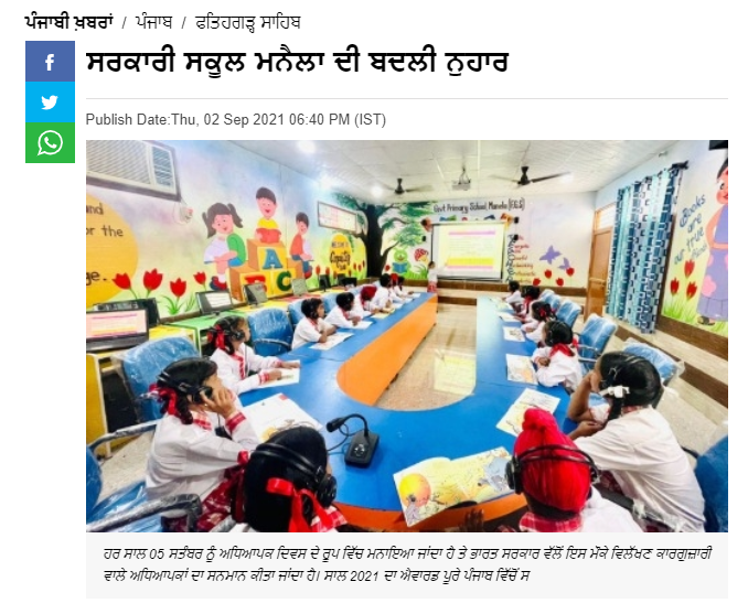 Media report published by News 18 Punjabi on September 4 ,2021