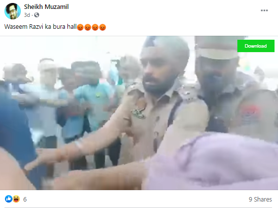 ਸੋਸ਼ਲ ਮੀਡੀਆ ਤੇ ਇਕ ਫੇਸਬੁੱਕ ਪੇਜ ਨੇ ਇਸ ਵੀਡੀਓ ਨੂੰ ਸ਼ੇਅਰ ਕਰਦੇ ਹੋਏ ਲਿਖਿਆ,’ਵਸੀਮ ਰਿਜ਼ਵੀ ਨੂੰ ਪੰਜਾਬ ਦੇ ਸਿੱਖਾਂ ਨੇ ਕੁੱਟਿਆ ਇਸ ਵੀਡੀਓ ਨੂੰ ਸ਼ੇਅਰ ਕਰੋ।’