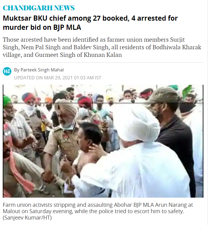 ਰਿਪੋਰਟ ਦੇ ਮੁਤਾਬਕ,ਵਿਧਾਇਕ ਅਰੁਣ ਨਾਰੰਗ ਮਲੋਟ ਵਿਖੇ ਇਕ ਪ੍ਰੈਸ ਕਾਨਫਰੰਸ ਨੂੰ ਸੰਬੋਧਨ ਕਰਨ ਪਹੁੰਚੇ ਸਨ। ਉਨ੍ਹਾਂ ਦੇ ਉਥੇ ਪਹੁੰਚਣ ਤੇ ਕਿਸਾਨ ਸਮਰਥਕ ਵੀ ਵੱਡੀ ਗਿਣਤੀ ਦੇ ਵਿਚ ਜੁੱਟ ਗਏ ਅਤੇ ਅਰੁਣ ਨਾਰੰਗ ਦਾ ਵਿਰੋਧ ਕਰਨ ਲੱਗੇ। ਜਦੋਂ ਅਰੁਣ ਨਾਰੰਗ ਪ੍ਰੈਸ ਕਾਨਫਰੰਸ ਨੂੰ ਸੰਬੋਧਨ ਕਰਨ ਤੋਂ ਬਾਅਦ ਵਾਪਸ ਜਾਣ ਲੱਗੇ ਤਾਂ ਕਿਸਾਨ ਸਮਰਥਕਾਂ ਨੇ ਉਨ੍ਹਾਂ ਨਾਲ ਖਿੱਚ ਧੂਹ ਅਤੇ ਕੁੱਟਮਾਰ ਕੀਤੀ।