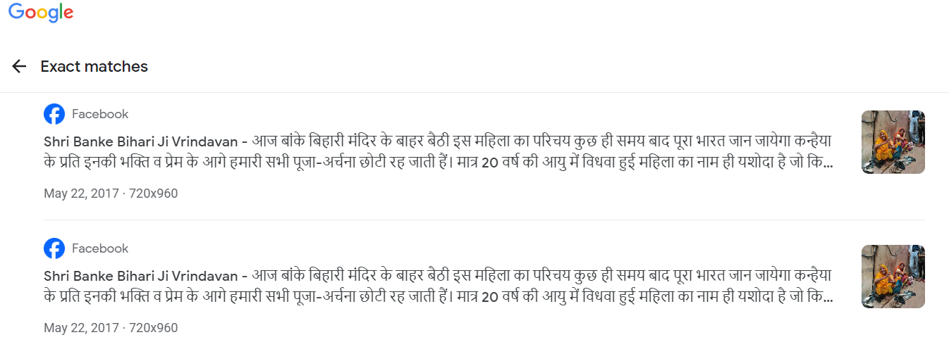 ਜਾਂਚ ਨੂੰ ਅੱਗੇ ਵਧਾਉਂਦਿਆ ਅਸੀਂ ਸੰਬੰਧਿਤ ਕੀ ਵਰਡਸ ਦੀ ਮਦਦ ਨਾਲ ਗੂਗਲ ‘ਤੇ ਖੋਜ ਕੀਤੀ, ਜਿਸ ਦੌਰਾਨ ਸਾਨੂੰ 26 ਮਈ 2017 ਨੂੰ ਟਾਈਮਜ਼ ਆਫ ਇੰਡੀਆ ਦੁਆਰਾ ਪ੍ਰਕਾਸ਼ਿਤ ਇੱਕ ਰਿਪੋਰਟ ਮਿਲੀ ।ਰਿਪੋਰਟ ਵਿੱਚ ਦੱਸਿਆ ਗਿਆ ਹੈ ਕਿ 70 ਸਾਲਾ ਵਿਧਵਾ ਨੇ ਵਰਿੰਦਾਵਨ ਵਿੱਚ ਇੱਕ ਗਊਸ਼ਾਲਾ ਅਤੇ ਇੱਕ ਧਰਮਸ਼ਾਲਾ ਬਣਾਉਣ ਲਈ ਦਹਾਕਿਆਂ ਦੀ ਬਚਤ ਅਤੇ ਆਪਣੀ ਜਾਇਦਾਦ ਵੇਚ ਕੇ ਇਕੱਠੇ ਕੀਤੇ 40 ਲੱਖ ਰੁਪਏ ਦਾਨ ਕੀਤੇ।