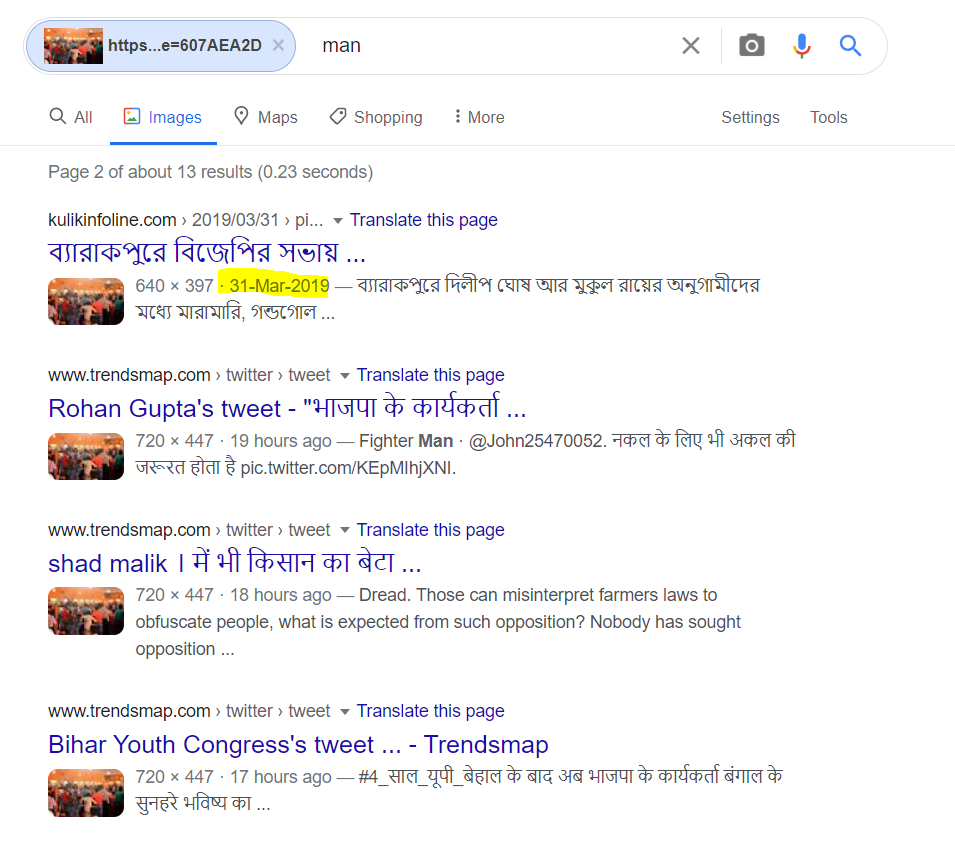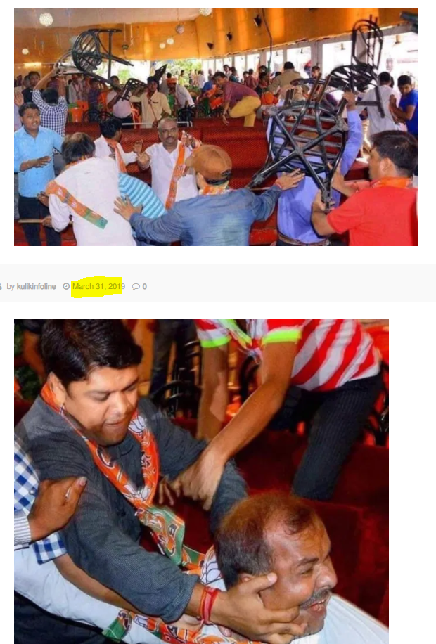 ਸਰਚ ਦੇ ਦੌਰਾਨ ਹੀ ਸਾਨੂੰ kulikinfoline.com ਨਾਮਕ ਇੱਕ ਵੈੱਬਸਾਈਟ ਤੇ ਇਨ੍ਹਾਂ ਤਸਵੀਰਾਂ ਨੂੰ ਲੈ ਕੇ ਬੰਗਾਲੀ ਭਾਸ਼ਾ ਵਿੱਚ ਪ੍ਰਕਾਸ਼ਿਤ ਇੱਕ ਲੇਖ ਮਿਲਿਆ ਜਿਸ ਵਿਚ ਇਹ ਜਾਣਕਾਰੀ ਦਿੱਤੀ ਗਈ ਸੀ ਕਿ ਇਹ ਤਸਵੀਰਾਂ 2019 ਵਿੱਚ ਬੈਰਕਪੁਰ ਵਿਖੇ ਭਾਜਪਾ ਦੇ ਕਾਰਕੁਨਾਂ ਦੁਆਰਾ ਆਯੋਜਿਤ ਇਕ ਮੀਟਿੰਗ ਦੀ ਹੈ ਜਿੱਥੇ ਭਾਜਪਾ ਦੀ ਪੱਛਮੀ ਬੰਗਾਲ ਦੀ ਇਕਾਈ ਦੇ ਦੋ ਵੱਡੇ ਨੇਤਾ ਮੁਕੁਲ ਰੋਏ ਅਤੇ ਦਿਲੀਪ ਘੋਸ਼ ਦੇ ਸਮਰਥਕ ਆਪਸ ਵਿੱਚ ਭਿੜ ਗਏ ਅਤੇ ਦੋਨੋਂ ਨੇਤਾਵਾਂ ਦੇ ਸਮਰਥਕਾਂ ਵਿੱਚ ਹੱਥੋਪਾਈ ਤੋਂ ਬਾਅਦ ਵਿਵਾਦ ਕਾਫੀ ਵਧ ਗਿਆ।