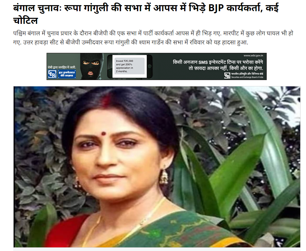 ਕੁਝ ਹੋਰ ਕੀ ਵਰਡ ਦੀ ਮਦਦ ਨਾਲ ਗੂਗਲ ਸਰਚ ਕਰਨ ਤੇ ਸਾਨੂੰ ਫਸਟਪੋਸਟ ਦੁਆਰਾ 3 ਮਾਰਚ 2016 ਨੂੰ ਪ੍ਰਕਾਸ਼ਿਤ ਇਕ ਲੇਖ ਮਿਲਿਆ ਜਿਸ ਵਿਚ ਵਾਇਰਲ ਤਸਵੀਰਾਂ ਮੌਜੂਦ ਸਨ। ਇਸ ਲੇਖ ਦੇ ਅਨੁਸਾਰ ਉੱਤਰ ਹਾਵੜਾ ਸੀਟ ਤੋਂ ਬੀਜੇਪੀ ਉਮੀਦਵਾਰ ਰੂਪਾ ਗਾਂਗੁਲੀ ਦੀ ਇਕ ਸਭਾ ਦੇ ਦੌਰਾਨ ਭਾਜਪਾ ਵਰਕਰ ਆਪਸ ਵਿਚ ਭਿੜ ਗਏ ਅਤੇ ਉਨ੍ਹਾਂ ਦੇ ਵਿਚ ਜੰਮ ਕੇ ਹੱਥੋਪਾਈ ਹੋਈ।