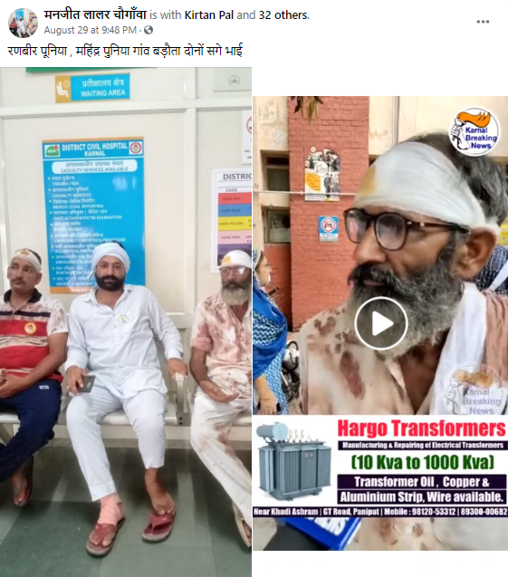 ਹੁਣ ਅਸੀਂ ਫੇਸਬੁੱਕ ਤੇ ਹਿੰਦੀ ਦੇ ਕੁਝ ਕੀਵਰਡ ਦੇ ਜ਼ਰੀਏ ਸਰਚ ਕੀਤਾ। ਆਪਣੀ ਸਰਚ ਤੇ ਦੌਰਾਨ ਸਾਨੂੰ ਕਿਸਾਨ ਨੇਤਾ ਅਭਿਮੰਨਿਊ ਕੋਹਾੜ ਦੁਆਰਾ ਅਪਲੋਡ ਇਕ ਪੋਸਟ ਮਿਲੀ। ਪੋਸਟ ਵਿੱਚ ਅਭਿਮੰਨਿਊ ਕੋਹਾੜ ਨੇ ਪੁਲੀਸ ਲਾਠੀਚਾਰਜ ਦੌਰਾਨ ਜ਼ਖ਼ਮੀ ਹੋਏ ਕਰਨਾਲ ਦੇ ਬੜੋਦਾ ਪਿੰਡ ਦੇ ਦੋ ਸਕੇ ਭਰਾ ਰਣਬੀਰ ਅਤੇ ਮਹਿੰਦਰ ਪੁੰਨਿਆ ਦਾ ਹਾਲ ਚਾਲ ਜਾਣਿਆ। ਅਭਿਮੰਨਿਊ ਕੋਹਾੜ ਦੁਆਰਾ ਅਪਲੋਡ ਕੀਤੀ ਗਈ ਪੋਸਟ ਵਿਚ ਮਹਿੰਦਰ ਪੂਨੀਆ ਨੂੰ ਦੇਖਿਆ ਜਾ ਸਕਦਾ ਹੈ।