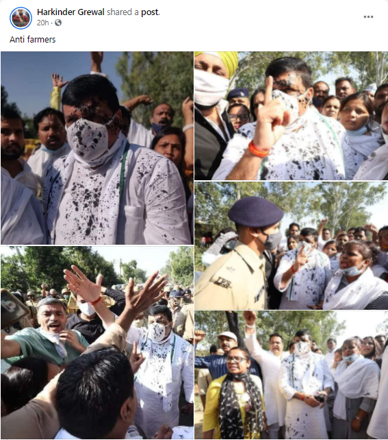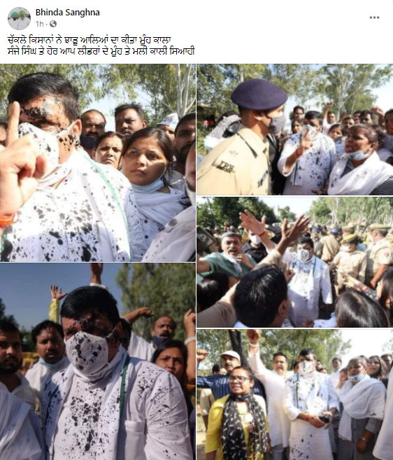 ਸੋਸ਼ਲ ਮੀਡੀਆ ਤੇ ਕੁਝ ਤਸਵੀਰਾਂ ਵਾਇਰਲ ਹੋ ਰਹੀਆਂ ਹਨ ਜਿਸ ਵਿੱਚ ਆਮ ਆਦਮੀ ਪਾਰਟੀ ਦੇ ਰਾਜ ਸਭਾ ਸਾਂਸਦ (Member Parliament) ਸੰਜੈ ਸਿੰਘ ਦੇ ਮੂੰਹ ਤੇ ਕਾਲਖ਼ ਪੋਤੀ ਹੋਈ ਦਿਖਾਈ ਦੇ ਰਹੀ ਹੈ। ਸੋਸ਼ਲ ਮੀਡੀਆ ਤੇ ਵਾਇਰਲ ਹੋ ਰਹੀ ਤਸਵੀਰਾਂ ਦੇ ਨਾਲ ਦਾਅਵਾ ਕੀਤਾ ਜਾ ਰਿਹਾ ਹੈ ਕਿ ਕਿਸਾਨਾਂ ਨੇ ਆਮ ਆਦਮੀ ਪਾਰਟੀ ਦੇ ਸੰਸਦ ਸੰਜੇ ਸਿੰਘ ਅਤੇ ਹੋਰ ਆਪ ਲੀਡਰਾਂ ਦੇ ਮੂੰਹ ਤੇ ਕਾਲੀ ਸਿਆਹੀ ਮਲ ਦਿੱਤੀ।