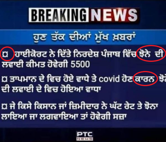 ਸੋਸ਼ਲ ਮੀਡੀਆ ਤੇ ਪੰਜਾਬੀ ਮੀਡੀਆ ਸੰਸਥਾਨ ਪੀਟੀਸੀ ਨਿਊਜ਼ ਦਾ ਇੱਕ ਗ੍ਰਾਫਿਕ ਪੋਸਟ ਵਾਇਰਲ ਹੋ ਰਿਹਾ ਹੈ ਜਿਸ ਮੁਤਾਬਕ ਹਾਈ ਕੋਰਟ (High Court) ਨੇ ਪੰਜਾਬ ਵਿੱਚ ਝੋਨੇ ਦੀ ਲਵਾਈ ਦਾ ਰੇਟ ਤੈਅ ਕੀਤਾ ਹੈ। ਵਾਇਰਲ ਹੋ ਰਹੀ ਪੋਸਟ ਦੇ ਮੁਤਾਬਕ ਹਾਈ ਕੋਰਟ ਦੇ ਨਿਰਦੇਸ਼ਾਂ ਅਨੁਸਾਰ ਝੋਨੇ ਦੀ ਲਵਾਈ ਰੁਪਏ ਤੈਅ ਕੀਤੀ ਗਈ ਹੈ ਅਤੇ ਜੇਕਰ ਕੋਈ ਇਨ੍ਹਾਂ ਨਿਰਦੇਸ਼ਾਂ ਦਾ ਪਾਲਣ ਨਹੀਂ ਕਰੇਗਾ ਤਾਂ ਉਸ ਨੂੰ ਸਜ਼ਾ ਹੋ ਸਕਦੀ ਹੈ।