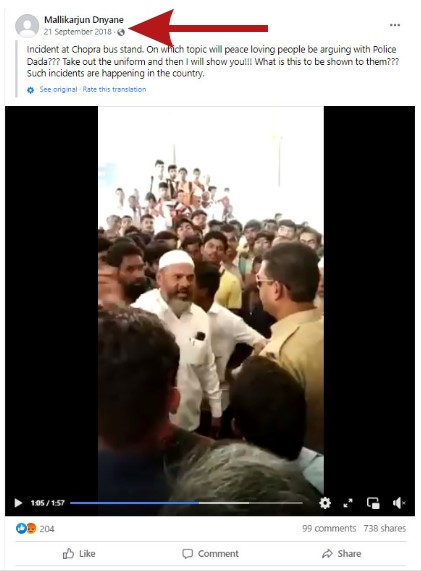 Carrying a longer version of the viral video, the post stated, “Incident at Chopra bus stand. On which topic will peace loving people be arguing with Police Dada??? Take out the uniform and then I will show you!!! What is this to be shown to them??? Such incidents are happening in the country. (translated from Marathi by Google)”