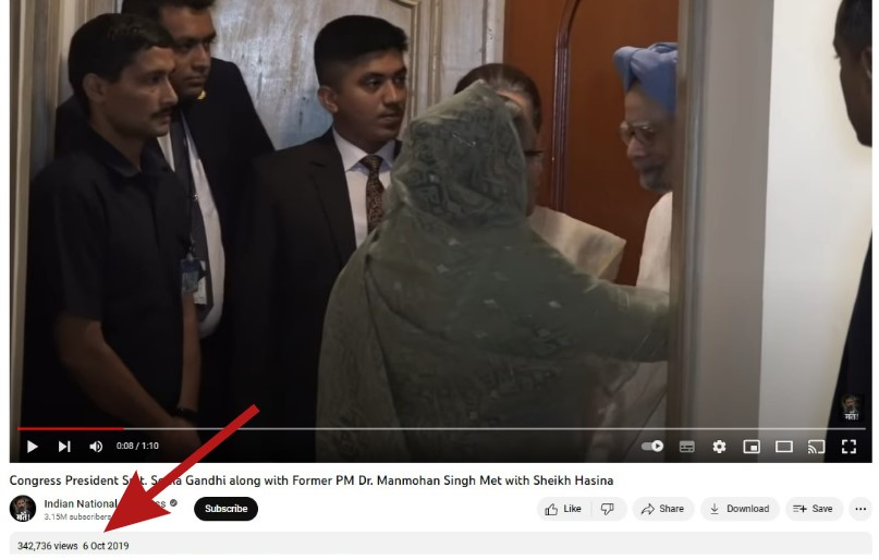 Further, the Congress Party had shared the viral footage on their YouTube channel on October 6, 2019 with the caption, “Congress President Smt. Sonia Gandhi along with Former PM Dr. Manmohan Singh Met with Sheikh Hasina.”