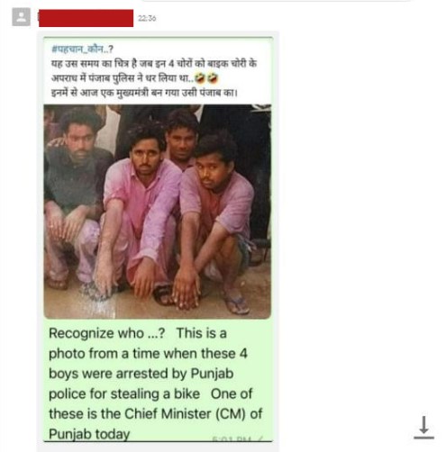 Sidhu dismissed the viral claim that the image shows Mann’s arrest in a bike theft case. “The claim is fake. This image was taken in Patiala in 1994 or 1995 when Canadian singer Harbhajan Mann had come to India. The image was taken at Harbhajan Mann’s home’s terrace on Holi. Bhagwant Mann. Karamjit Anmol and Harbhajan Mann were also present there. Bhagwant Mann and I have been friends since college days,” Sidhu told Newschecker.
