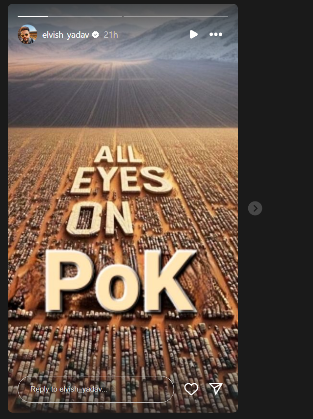 While there is no mention of any such post by PM Modi in the media, YouTuber Elvish Yadav is making the headlines for posting an image saying “All eyes on PoK.” “The popular YouTuber, known for his strong views on Hinduism, has now taken to social media to oppose the ‘All eyes on Rafah’ trend. Instead, he shared a similar template with the caption ‘All eyes on POK,’ referring to Pakistan-occupied Kashmir,” reported Times of India.