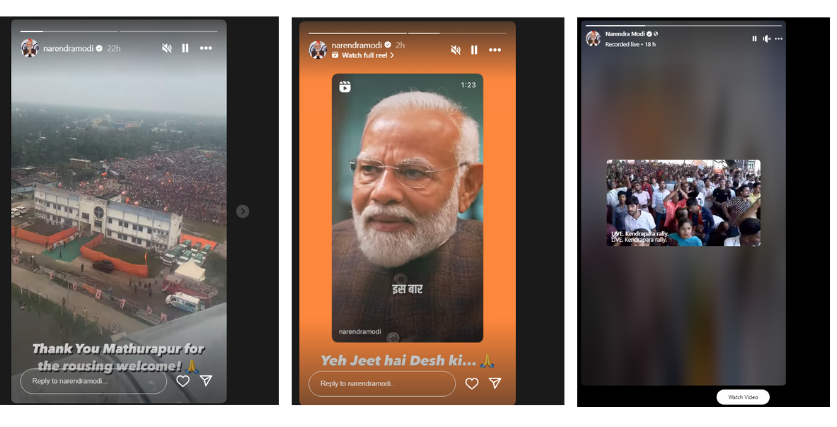 The stories currently featured in Narendra Modi’s Facebook and Instagram profiles can be seen below.