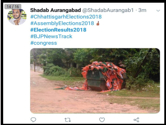 Newschecker conducted a Google reverse image search on the viral image to ascertain its authenticity and found a tweet from Dec 4, 2018 on Twitter. The tweet contained the same image along with a caption ‘कमल कीचड़ मे खिलता है ये तो मुझे मालूम था, मगर झंडा कूड़ेदान मे मिलता है ये हमे मालूम न था’. The caption says that we knew that lotus buds flower in dirty water, but we had no idea that flags bud in dumpsters.