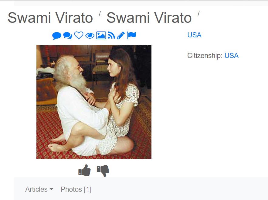 On conducting a reverse image search on the viral collage, we traced back the image purportedly showing Asaram Bapu groping a woman to this article on a Russian website. According to the article, which was published on December 12, 2000, the man seen in the image is “Swami Virato”, a former American businessman who became a sex guru.