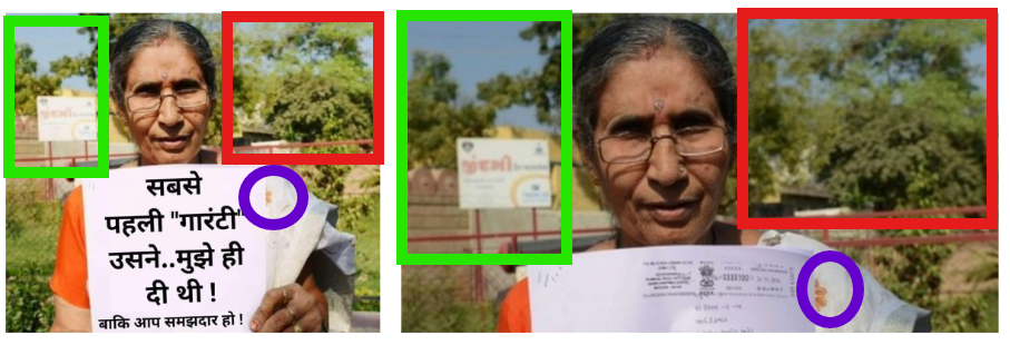 We could thus conclude that the viral image of Jashodaben targeting ‘Modi ki Guarantee’ has been digitally altered.