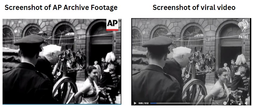 On carefully analysing the video, we can hear the narrator saying, “The conferring of the freedom of the city on Mr Jawaharlal Nehru, primer of India….” Taking a clue, we looked up keywords “freedom of the city” & “Nehru” on Google which led us to a video uploaded on AP Archives, titled “FREEDOM OF THE CITY FOR PANDI NEHRU – SOUND (sic).” We compared the keyframes of the viral clip with those of the AP Archive footage and found them to be from the same event.