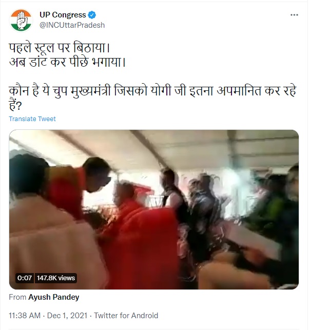 During the investigation, it was found that journalist Manish Pandey, Resident Editor of Knewsindia has tweeted the viral video, describing it to be from a program in Gorakhpur held on 29th November 2021 , and has described the person who faced the displeasure of Chief Minister Yogi as BJP leader Vibhrat Chand Kaushik.