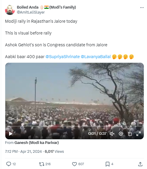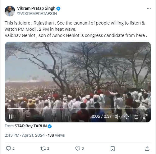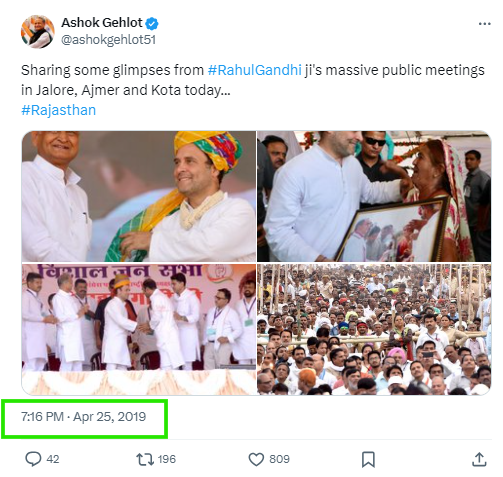 Notably, the Congress did organise rallies at multiple places in Rajasthan, including Jalore, on April 25, 2019. Congress leader and former Rajasthan CM Ashok Gehlot had shared visuals from the meeting on his official X account.