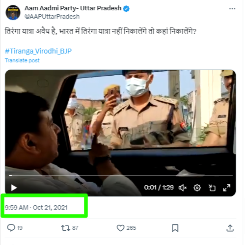 A similar video of an altercation between Singh and police officials was also shared on the official X handle of AAP Uttar Pradesh on October 21, 2021. In the video, the AAP leader can be heard arguing with the police after being denied permission for a Tiranga Yatra in Varanasi, claiming that the yatra was termed illegal.