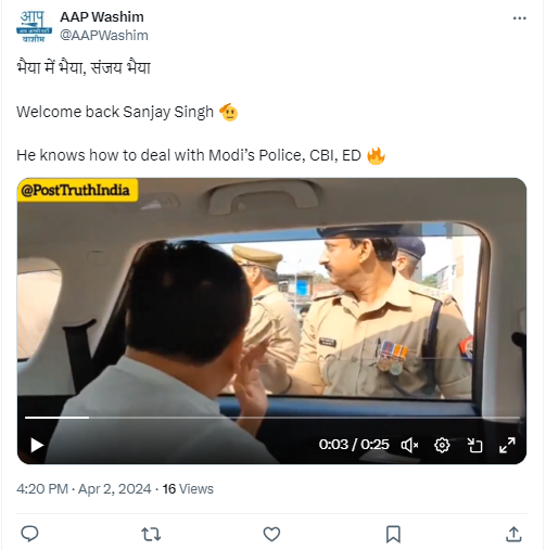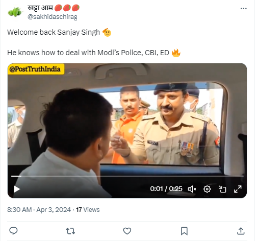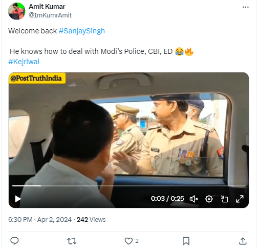 Multiple X users shared the video stating, “Welcome back #SanjaySingh He knows how to deal with Modi’s Police, CBI, ED “