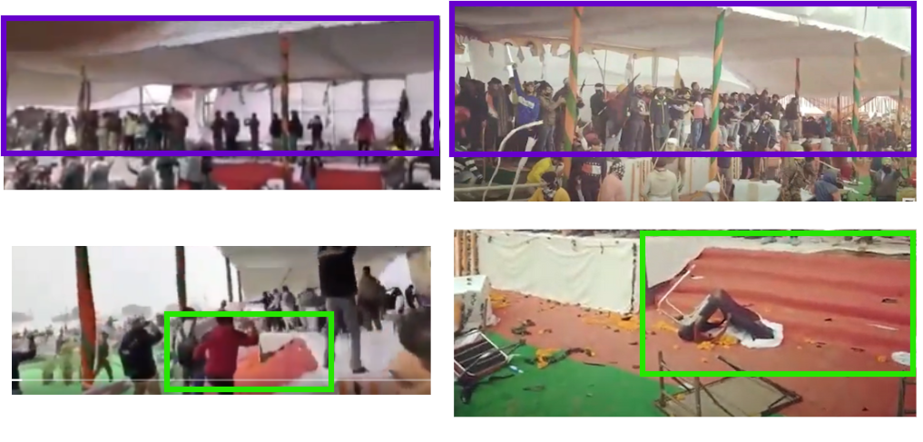 A comparison between the visuals seen in the Tribune’s report, and the keyframes of the viral video can be seen below.