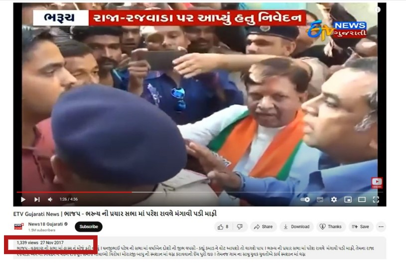 A YouTube video by News18 Gujarati, dated November 27, 2017, displayed the same visuals from a different angle