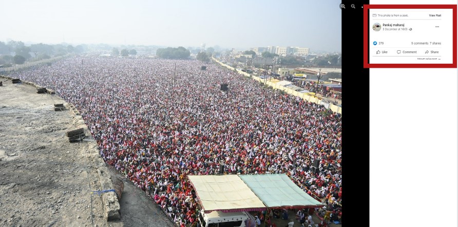 The Rahul Gandhi-led Bharat Jodo Yatra is currently passing through the Congress-ruled Rajasthan. Visuals showing huge crowds following Gandhi on streets are flooding social media platforms. One such photo showing an aerial view of a large gathering in an open field is also going viral. Those who shared the image claimed that it showed visuals from the Rajasthan leg of the Bharat Jodo Yatra. Newschecker found the claim to be untrue. Neither is the photo from Rajasthan, nor does it show visuals from Bharat Jodo Yatra.