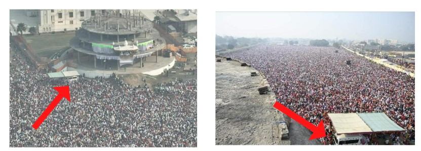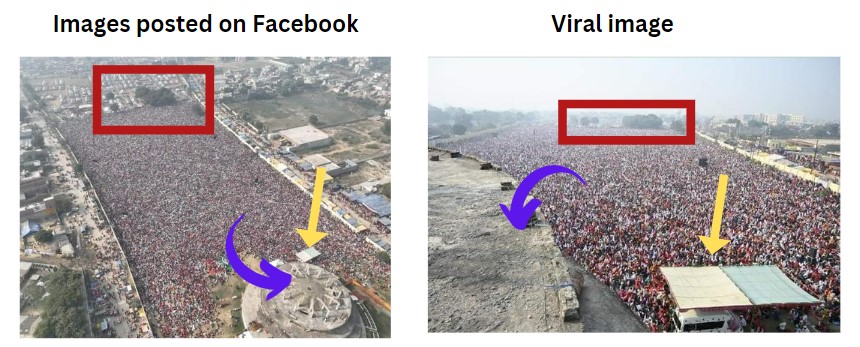 On comparing the photos featured in the Facebook post with the viral image, we spotted several similarities, including the car shed and composition of the crowd, prompting us to conclude that the visuals were from the same event. The same can be seen below.