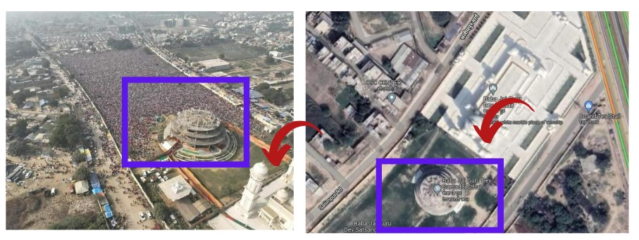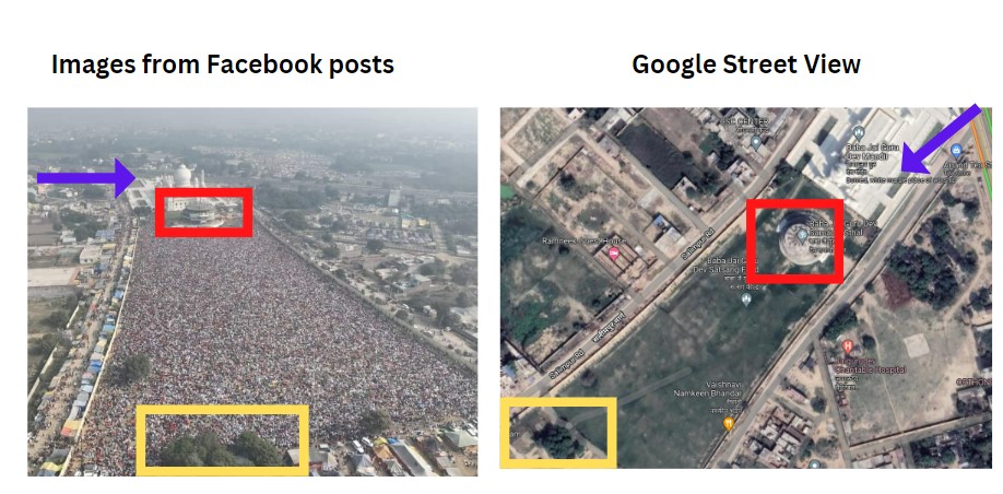 Further, a comparison between the Google Street View of Jai Gurudev Ashram, Mathura and the images posted on Facebook led us to conclude that visuals are actually from the UP city, and not Rajasthan as widely claimed.