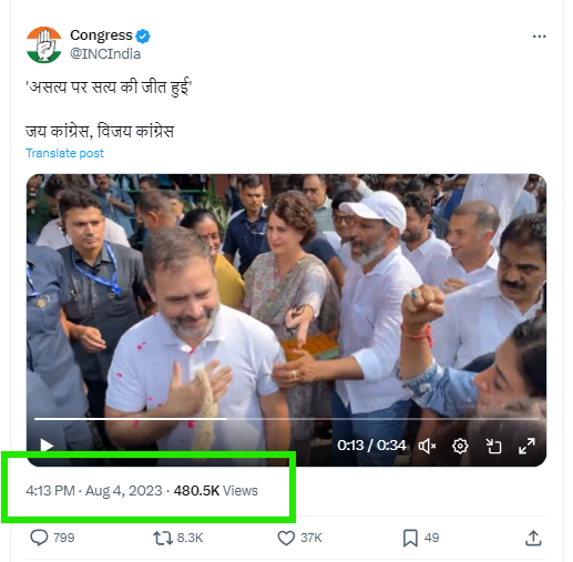 Proclaiming the “victory of truth over falsehood,” the official X handle of the Indian National Congress also shared the viral footage in August 2023.