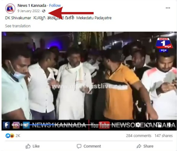 The video is over 1-year-old, and reportedly from Congress’ Mekedatu Padayatra in Karnataka.