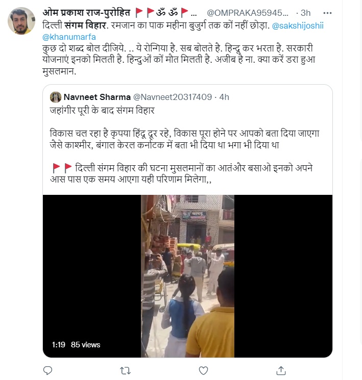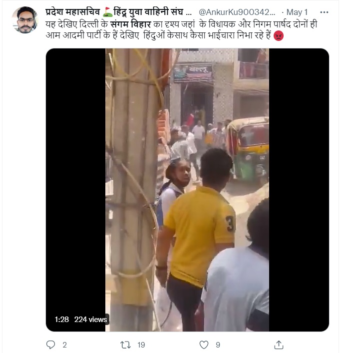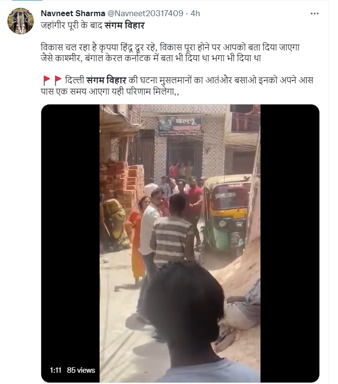 Newschecker found that several such claims were widely shared in Hindi in Facebook and Twitter with similar captions, identifying the location as Sangam Vihar and attributing the violence to religious motive.